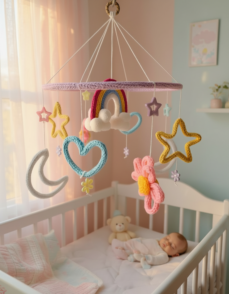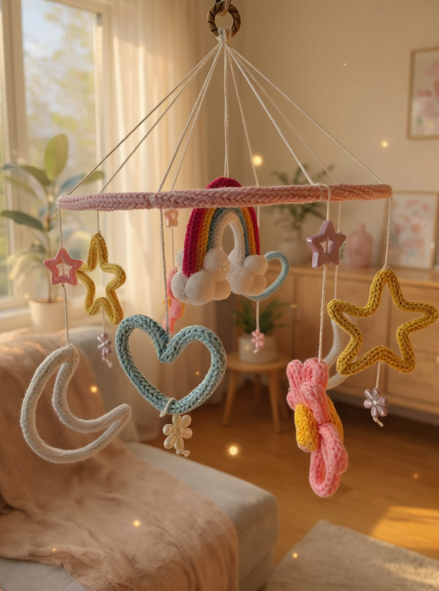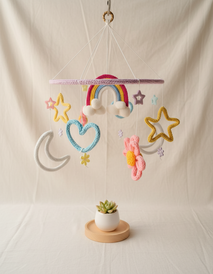 Thoughtfully handcrafted with beautiful crochet details, this nursery piece adds a soft, joyful, and heartwarming touch to your baby room, gifting moments, or home decor setup.